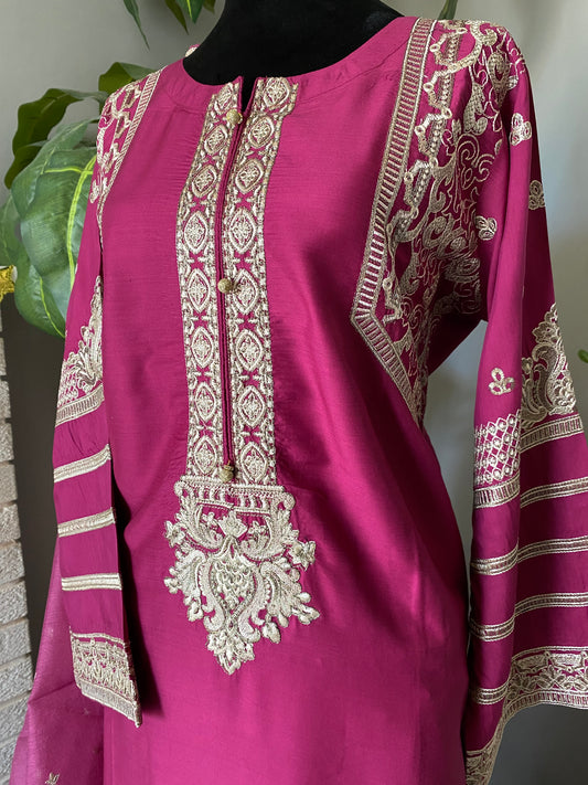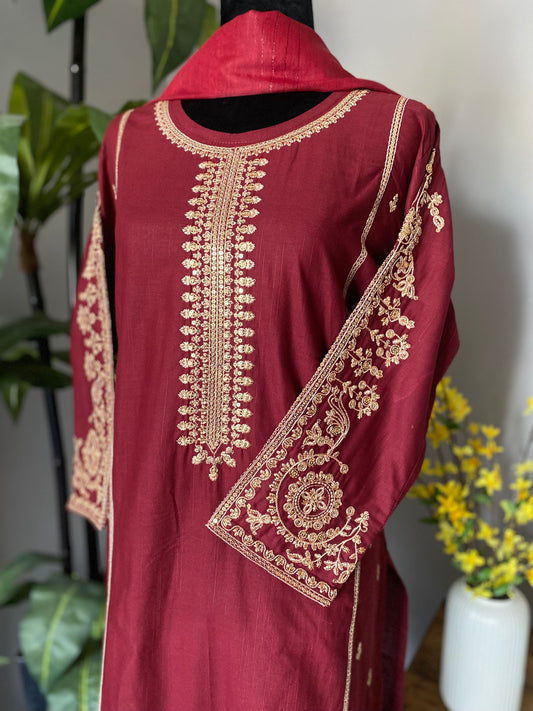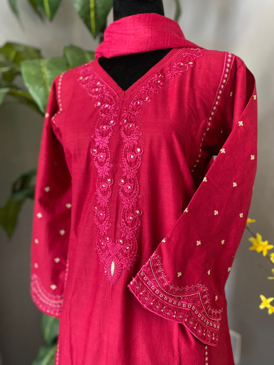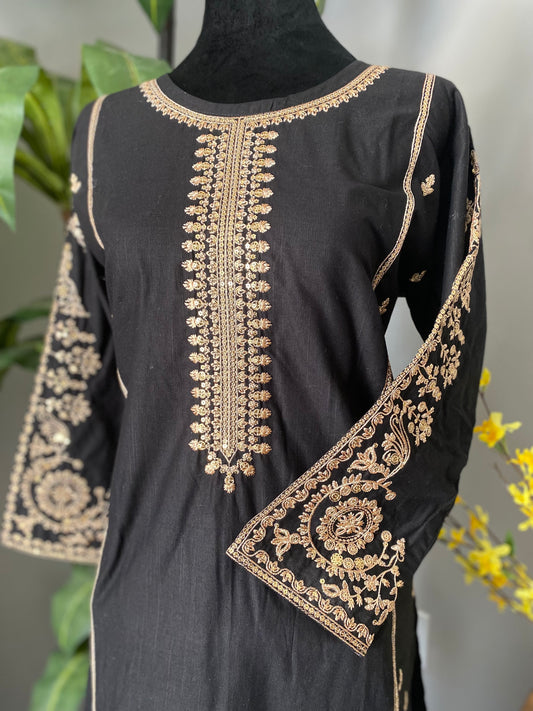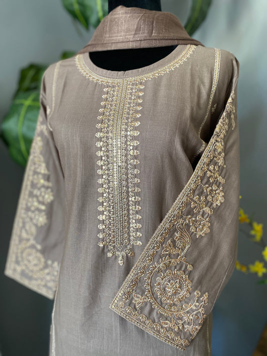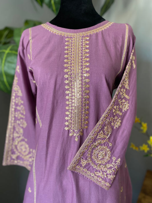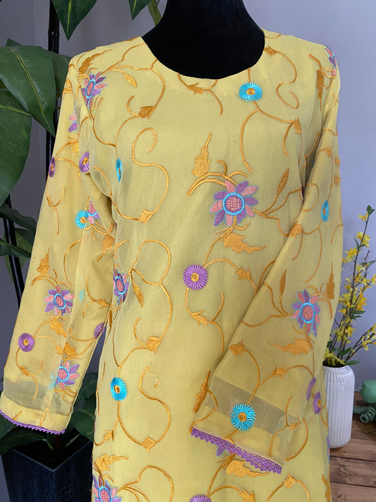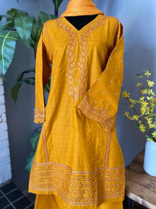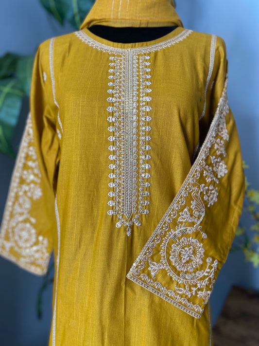 Embroidered Cotton 3-piece MUSTARD YELLOW