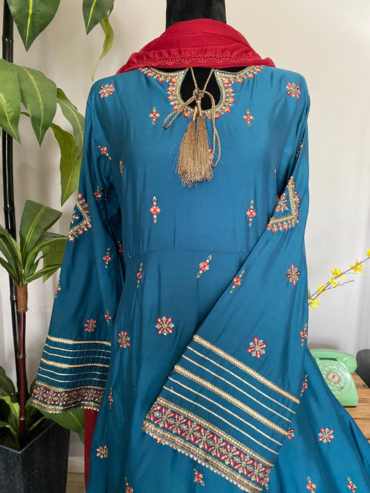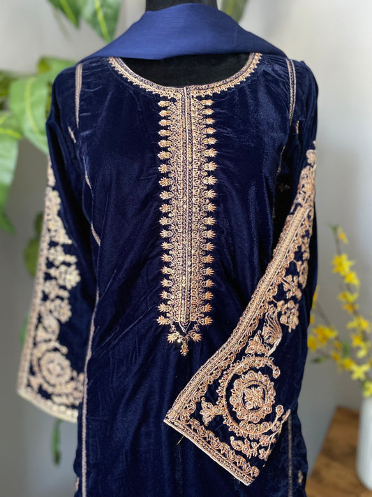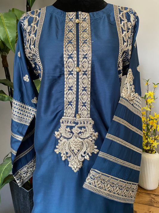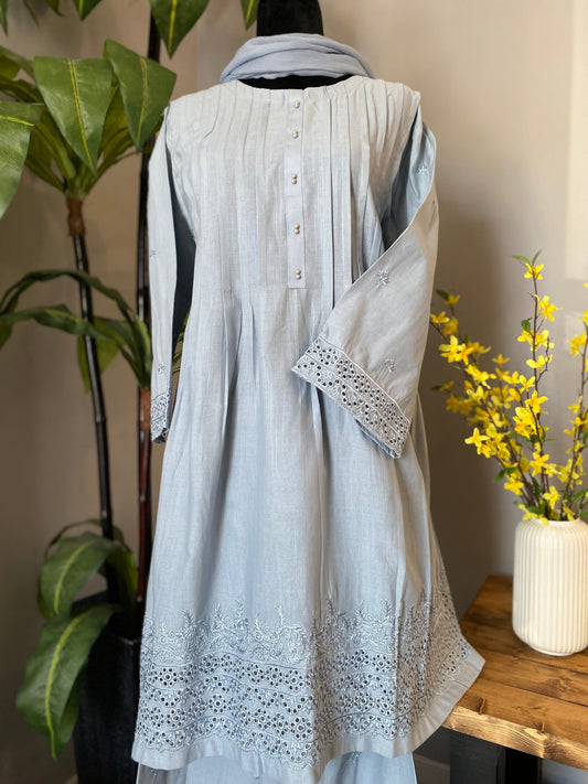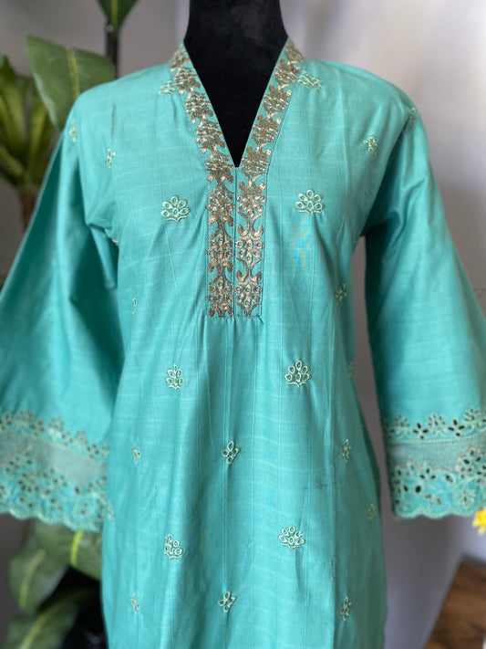Embroidered Cotton 3-piece AQUAMARINE BLUE